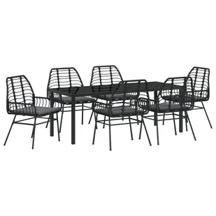 vidaXL Zestaw 7-częściowy Do Jadalni OG Z Poduszkami Czarny Polirattan