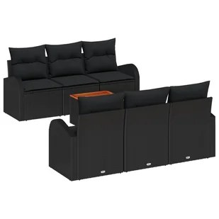 vidaXL Zestaw 7-częściowy sof ogrodowych z poduszkami Czarny Polirattan Akacja