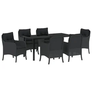 Odmień swoją przestrzeń do jedzenia na świeżym powietrzu z zestawem do jedzenia w ogrodzie vidaXL 7 elementów. Elegancki czarny design z polirattanu nie tylk...
