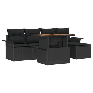 vidaXL Zestaw jadalny 6-elementowy z poduszkami Czarny Polirattan Akacja