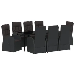 vidaXL Zestaw ogrodowy 9 elementów z poduszkami - czarny polirattan