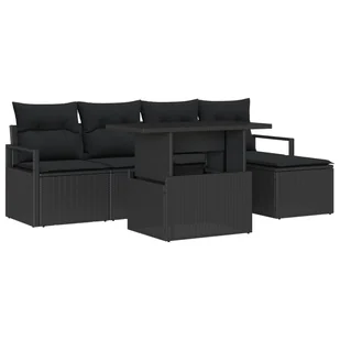 Zestaw 6 częściowych sof ogrodowych z poduszkami Czarny Polirattan
