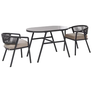 Zestaw typu bistro. Styl: Śródziemnomorski. Kolor główny: Szary. Rodzaj materiału: Metal. Materiał: Stal. Materiał dodatkowy: