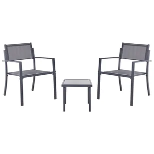 Zestaw typu bistro. Kolor główny: Szary. Odcień: Ciemnoszary. Rodzaj materiału: Metal. Materiał: Stal. Materiał dodatkowy: