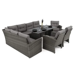 Zestaw mebli ogrodowych dla 9 osób KRETA Technorattan Szary Poduszki szare
