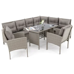 Zestaw mebli ogrodowych dla 9 osób PARIS BIG Technorattan Mould Poduszki szare 01