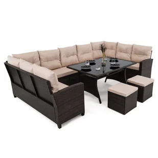 Zestaw mebli ogrodowych dla 9 osób PORTO Technorattan Brązowy Poduszki beż 01