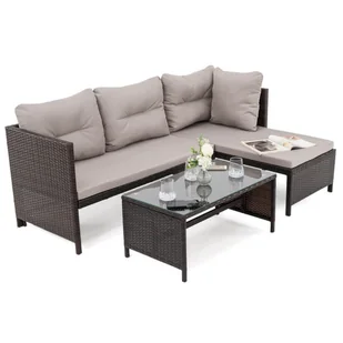 Zestaw mebli ogrodowych NICEA Technorattan Brązowy Poduszki szare 03