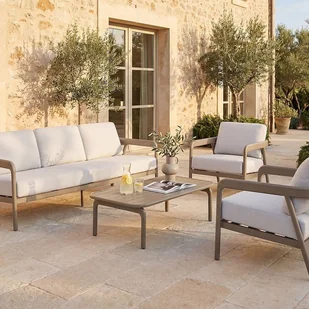Ten zestaw ogrodowy oferuje głębokie siedzisko, które zapewnia natychmiastowy komfort w stylu lounge. Poduszki wzmacniają to uczucie dobrego samopoczucia. Posiadają zdejmowane pokrowce, które można łatwo prać ręcznie, co upraszcza konserwację po regularnym użytkowaniu. Ich wodoodporna powłoka ogranicza wchłanianie wilgoci, podczas gdy ochrona przeciw promieniowaniu UV pomaga zachować ich jakość przez wiele sezonów.
