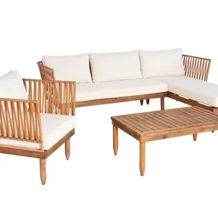 - Ten zestaw mebli ogrodowych przyciąga wzrok. Dzięki połączeniu drewna akacjowego, które jest wytrzymałym drewnem liściastym, oraz plecionki linowej, zestaw ten stanowi ekstrawagancki akcent na balkonie, tarasie lub w ogrodzie zimowym.