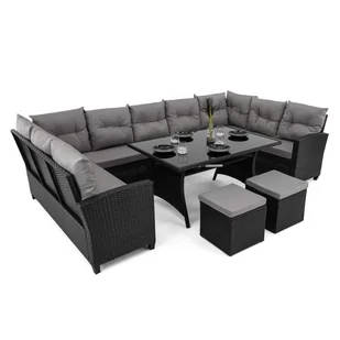 Zestaw ogrodowy PORTO Dwa pojemniki Technorattan Czarny Poduszki szare 01