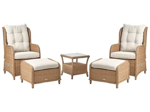 Zestaw ogrodowy ze stolikiem i otomaną dla 2 osób PONZA Technorattan Brązowy