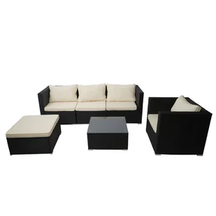 Zestaw z polirattanowym wykończeniem Brescia, zestaw ogrodowy, zestaw wypoczynkowy, sofa, zestaw lounge ~ czarny, poduszki w kolorze kremowym
