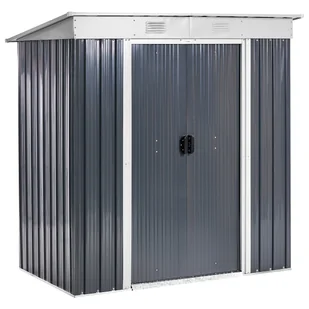 Szopa na narzędzia do ogrodu. Ta szopa na narzędzia to niezawodne miejsce do przechowywania wszystkich ogrodowych niezbędników. Wykonana z wytrzymałej stali ocynkowanej, jest odporna na rdzę i wodę, co gwarantuje wieloletnie użytkowanie. Suwane drzwi zapewniają łatwy dostęp, a uchwyty mają otwory na kłódkę, co umożliwia ochronę narzędzi. Wbudowane otwory wentylacyjne poprawiają cyrkulację powietrza, utrzymując wnętrze w suchym stanie.