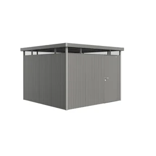 Metalowy domek ogrodowy HighLine wielkość H6 (315x315cm), drzwi pojedyncze, kolor kwarcowoszary metaliczny Domek ogrodowy Biohort Highline to doskonałe rozwiązanie dla osób poszukujących przestronnego i trwałego schowka. Dzięki przemyślanej konstrukcji i nowoczesnemu designowi, domek idealnie sprawdzi się jako miejsce na narzędzia, sprzęty ogrodowe czy rowery, jednocześnie stanowiąc ozdobę każdego ogrodu. 20 lat gwarancji - nie wymaga konserwacji, malowania i innych dodatkowych prac. W wyposażenieu standardowym 2 półki, 4 wieszaki narzędziowe i 2 uchwyty narzędziowe. Ponadto dostępne akcesoria pozwalają na indywidualną konfigurację na miarę indywidualnych potrzeb.