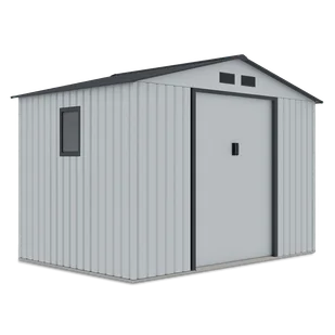 Nie wymaga konserwacji Wymiary z dachem 277x191 cm Wysokość drzwi 162 cm Podwójne drzwi przesuwne Kolor: Light Grey Cyrkulacja powietrza Możliwość zamontowania kłódki na drzwiach (brak w zestawie) Otwory wentylacyjne Okno z wyborem miejsca montażu Dwuspadowy dach Całoroczny Łatwy montaż, bez specjalistycznej wiedzy technicznej Odporny na korozję Nie zawiera podłogi
