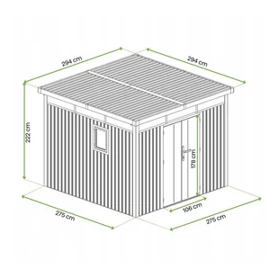 "Domek narzędziowy OTTAWA – Hardmaister OTTAWA to nowoczesny i przestronny domek narzędziowy o powierzchni całkowitej 8,64 m², idealny do przechowywania narzędzi, sprzętu ogrodowego czy akcesoriów sezonowych. Dzięki stalowej konstrukcji ocynkowanej i malowanej proszkowo, domek jest odporny na korozję i zapewnia trwałość na wiele lat. Płaski, jednospadowy dach z systemem rynien skutecznie odprowadza wodę, a otwory wentylacyjne dbają o prawidłową cyrkulację powietrza, chroniąc wnętrze przed wilgocią i nieprzyjemnymi zapachami. Domek posiada podwójne drzwi na zawiasach zamykane na klucz, które gwarantują wygodne i bezpieczne wejście. Rekomendacje montażowe Najlepiej ustawić domek na równym, czworokątnym terenie z dobrym odpływem wody.