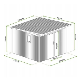 "Domek narzędziowy PORTLAND – Hardmaister PORTLAND to przestronny i funkcjonalny domek narzędziowy o całkowitej powierzchni 9,19 m², zaprojektowany z myślą o wygodnym przechowywaniu narzędzi i sprzętu ogrodowego. Solidna stalowa konstrukcja ocynkowana i malowana proszkowo zapewnia odporność na korozję i trwałość na wiele lat, a wysokie ściany umożliwiają swobodne poruszanie się wewnątrz. Domek wyposażono w podwójne drzwi na zawiasach zamykane na klucz, spadzisty dach z rynnami odprowadzającymi wodę oraz magnetyczne okno z poliwęglanu, które można zamontować po dowolnej stronie. Estetyczny, szary kolor i mniej widoczne śruby nadają konstrukcji nowoczesny wygląd, idealnie komponujący się z ogrodem. ekomendacje montażowe Wybierz równy, wypoziomowany teren z dobrym odpływem wody.