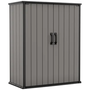 Szafa na narzędzia Premier Tall to doskonałe miejsce do przechowywania długich narzędzi do pielęgnacji ogrodu i innych przedmiotów o nietypowych, większych wymiarach. Szafa o pojemności 1500 l, z nachylonym progiem jest idealnym schowkiem na cięższe przedmioty, które można łatwo wtaczać i wytaczać, gdy są potrzebne. Wbudowana płyta podłogi chroni wnętrze przed błotem i przedostawaniem się opadów atmosferycznych. Wzmocnione ożebrowaniem ściany są stabilizują konstrukcję. Domek nie wymaga konserwacji.