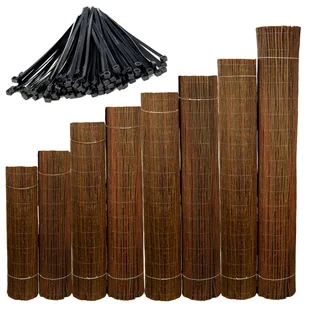 Pozostawiony odpowiedni zapas drutu na krańcach długości każdej maty umożliwia połączenie dowolnej ich ilości, praktycznie bez widocznych miejsc łączeń. Montaż maty wiklinowej jest szybki i prosty. W zależności od rodzaju ogrodzenia, czy balustrady wykonuje się go za pomocą drutu ocynkowanego, gwoździków, zszywek tapicerskich czy opasek samozaciskowych (tzw. trytytek), które dostają Państwo od nas w zestawie. Opaski do montażu są w zestawie do każdej maty. Do maty długości 5 m - 50 sztuk, a do maty długości 3 metry - 30 sztuk.