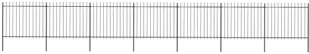 Stwórz eleganckie ogrodzenie wokół swojego ogrodu lub domu! To ozdobne, stalowe ogrodzenie, składające się z 7 paneli i 8 słupków, ma długość całkowitą 11,9 m. Utworzy mocną, bezpieczną i niewymagającą konserwacji granicę Twojego ogrodu, siedliska lub terenu komercyjnego.