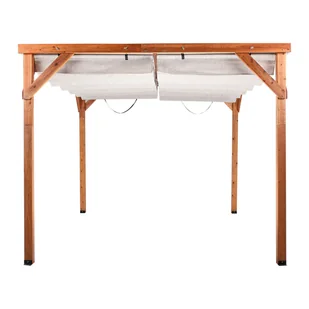 Odśwież swoją przestrzeń na świeżym powietrzu tą elegancką pergolą, wykonaną z wytrzymałego drewna jodłowego, które nadaje całości naturalny i trwały charakter. Rozsuwany, tekstylny dach umożliwia regulację cienia, zapewniając łatwą kontrolę nad nasłonecznieniem i komfortem. Idealna na taras, do ogrodu lub na spotkania w ogrodzie, jej ponadczasowy design doskonale wpasuje się w każde otoczenie. Solidna konstrukcja gwarantuje stabilność, a składany daszek gwarantuje możliwość użytkowania przez cały rok. głębokość 380 cmKolor BrązowyKształt ProstokątnyMateriał Drewno jodłowe Włókno tekstylneSzerokość 320 cmWysokość 250 cm