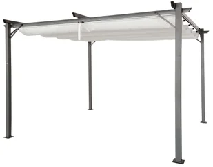 Zastosowany system "żabek" sprawia, że łatwo dopasujesz ustawienie materiału do swoich potrzeb. Estetyczne mocowanieZsunięty dach z wodoodpornej tkaniny da się unieruchomić przy pomocy specjalnych uchwytów, co pozwala zachować elegancki wygląd pergoli w każdej sytuacji pogodowej. Solidna konstrukcjaStalowa rama, złączona za pomocą dołączonych nitów, zapewnia niezawodność i sztywność całej pergoli. Dodatkowe zabezpieczenie przed korozją gwarantuje malowanie proszkowe. Stabilne mocowanie do podłoża Pergolę można trwale zamocować do podłoża przy użyciu odpowiednich śrub (brak w zestawie).