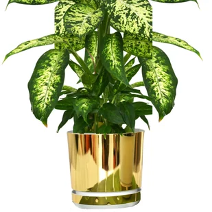 14 cm wzór ZŁOTO - BIAŁA Doniczka z podstawką * nowoczesna *elegancka *styl glamour * wysoki połysk * z drenażem