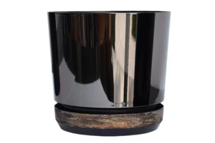 26 cm Doniczka DUO dwukolorowa CZARNA z podstawką RDZAWA KORA * nowoczesna * styl glamour * efekt lustra black * wysoki lustrzany połysk metaliczna ..