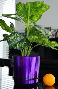 26 cm wzór FIOLETOWY BŁYSZCZĄCY Doniczka z podstawką * nowoczesna * styl glamour * wysoki lustrzany połysk metaliczna * z drenażem * do fioletowych..