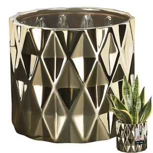 Oryginalna struktura donicy w wyjątkowy sposób eksponuje rośliny. Ten szczególny element wyposażenia wnętrz może znajdować się w kuchni, salonie, sypialni lub łazience. Jest idealna dla osób szczególnie ceniących sobie piękno i estetykę.Doniczka wykonana jest z wysokiej jakości ceramiki.Wyprodukowana z solidnego i trwałego tworzywa jest odporna na uszkodzenia.Doniczka, zdobiona niezwykłymi wzorami, wykonana jest z dużą precyzją i zwróci uwagę każdego gościa.Jest funkcjonalnym oraz estetycznym rozwiązaniem dla Twojego domu.Dzięki procesowi galwanizacji w efektowny sposób odbija światło.Połysk nadaje donicy oraz wnętrzu odrobinę szlachetności.Solidna, wyprodukowana z trwałego tworzywa, dodatkowo szkliwiona doniczka jest odporna na zarysowania oraz uszkodzenia mechaniczne.Do produkcji zostały użyte materiały najwyższej jakości.Wyjątkowe i ponadczasowe wzornictwo nadaje niezwykłą aurę każdemu wnętrzu.Doniczka z wykonanym precyzyjnie zdobieniem jest także oryginalnym pomysłem na prezent.Może pełnić funkcję osłonki, czy służyć do przechowywania różnych przedmiotów.