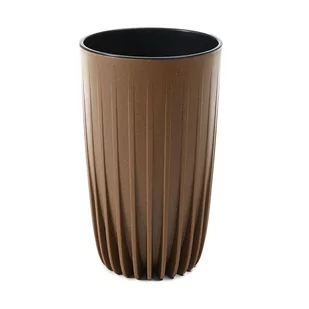 40% drewna, - optymalna waga – w porównaniu do osłonek z betonu lub kamienia, donica z tworzywa jest znacznie lżejsza, a tym samym łatwiejsza do przenoszenia i ustawienia, - estetyka – smukły kształt, ozdobne pasy sprawiają, że doniczka pasuje do każdej aranżacji, - łatwość czyszczenia – donicę wystarczy przetrzeć wilgotną szmatką lub zmyć wodą, aby pozbyć się zabrudzeń, - wyciągany wkład pozwalający utrzymać idealne warunki nawodnienia roślin oraz ograniczy ilość użycia ziemi w donicy. Możliwość wykonania otworów, które pomogą odprowadzić nadmiar wody i ochronią korzenie przed gniciem, - produkt polski.