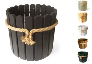 Doniczka 30cm z liną okrągła antracyt Doniczka drewniana, sosnowa, okrągła, owinięta liną jutową lub w wersji z uszami. Wersje kolorystyczne to impregnowane ...
