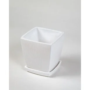 Doniczka ceramiczna Kwadrat z podstawkiem 16 cm biały