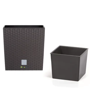 Doniczka kwadratowa wkład rattan 20x20x20,2 cm umbra Kwadratowa doniczka z fakturą przypominającą plecionkę rattanową w kolorze umbra. Rattan to największy h...