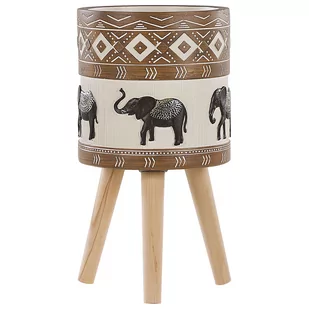 Doskonała dekoracja zarówno do użytku wewnętrznego jak i zewnętrznego. Inspirowana stylem boho, wykonana w całości ręcznie z wysokiej jakości materiałów, ozdobiona jest inkrustowanym motywem słonia. Pomalowana w odcieniach brązu i beżu tworzy efekt postarzania. Główne cechy tej donicy sprawiają, że jest ona doskonałym dodatkiem do pokoju dziennego w stylu vintage. Ze względu na ręczne wykonanie każdego produktu, mogą występować różnice w fakturze i kolorze.