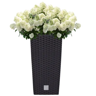 Doniczka wysoka wkład rattan 17x17x32,4 cm antracytowy Kwadratowa doniczka z fakturą przypominającą plecionkę rattanową w kolorze antracytu. Rattan to najwię...