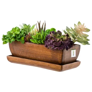 Kaktusiarka doniczka Ceramika brązowy mat 29cm z podstawką sukulenty