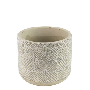 Ożyw swoje wnętrze z elegancką osłonką Jana w odcieniu szarości. Ta cylindryczna osłonka o średnicy 10 cm wykonana z betonu łączy funkcjonalność z nowoczesnym designem. Charakteryzuje się powtarzającym się geometrycznym wzorem, który dodaje jej wyrazistości i stylu. Mimo że nie jest mrozoodporna, jej odporność na działanie promieni UV gwarantuje długotrwały wygląd. Idealna do mniejszych roślin, osłonka Jana wprowadzi minimalistyczny akcent do każdego wnętrza.