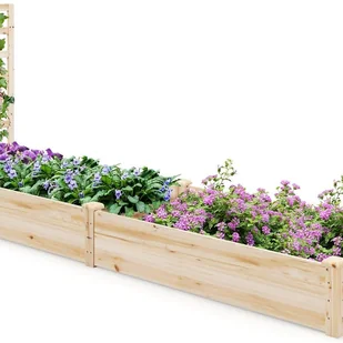 【Stabilna konstrukcja i łatwy montaż】Ta drewniana donica z drewna sosnowego jest zbudowana z desek o grubości 14 mm, a narożniki są wzmocnione, co zapewnia dobrą stabilność. Posiada również rozcięte nóżki, co ułatwia montaż. Ma wymiary 235 x 63 x 102 cm, a pojemność gleby wynosi 0,3 m3.