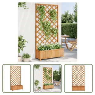 Donica z trejażem, brązowa, lite drewno jodłowe Ta drewniana donica z trejażem to doskonały wybór do hodowli roślin pnących w Twoim ogrodzie, na patio i tara...