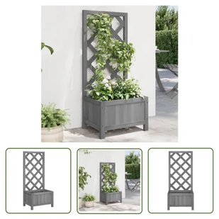 Donica z trejażem, szara, lite drewno jodłowe Ta drewniana donica z trejażem to doskonały wybór do hodowli roślin pnących w Twoim ogrodzie, na patio i tarasi...