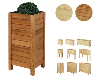 Drewno sosnowe Kolor: Brązowy Wykończenie: Bejcowany Obróbka dodatkowa: Szlifowany Montaż: Do samodzielnego montażu Dekoracyjne skrzynie na kwiaty, zioła itp.