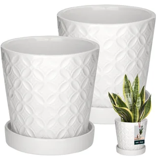 ZESTAW 2X DONICA DONICZKA OSŁONKA PODSTAWKA 13 CM BIAŁA SZKLIWIONA CERAMIKA Okrągła doniczka biała wykonana z ceramiki szkliwionej zamyka w sobie połączenie ...
