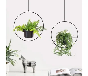 Zestaw dwóch wiszących doniczek. Prosty styl sprawia, że nadają się do każdego domu. Wykonane z metalu. Większy rozmiar: 30 x 30 x 30 cm.