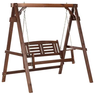 Huśtawka. Kolor główny: Brązowy. Rodzaj materiału: Drewno. Materiał: Drewno świerkowe. Materiał dodatkowy: Żelazo. Wykończenie: