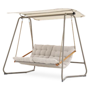 Dane techniczneWymiary huśtawki: szerokość: 214 cm głębokość: 154 cm wysokość: 202 cm Wymiary siedziska i oparcia: szerokość: 145 cm głębokość: