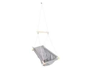 roba Huśtawka wisząca Wykonany z wytrzymałego materiału Canvas, naturalnego drewna, metalowe części ze stali nierdzewnej, zdejmowany materac i zdejmowany pas krokowy. Hamak może być używany przez małe dzieci do ok. 30 kg (tj. od 0 do około 6 lat). Dzięki regulacji dwóch pierścieni na linach zawieszenia, hamak może być używany w pozycji poziomej jako łóżeczko i w płynnie regulowanej pozycji nachylonej jako hamak. Właściwości Ulubione miejsce do marzeń i czytania Wykonany z wytrzymałego materiału Canvas, naturalnego drewna, metalowe części ze stali nierdzewnej Płynna regulacja nachylenia powierzchni leżącej/siedzącej Zabezpieczenie dziecka za pomocą regulowanego pasa brzusznego Dodatkowy, zdejmowany materac do leżenia/siedzenia Obciążenie: