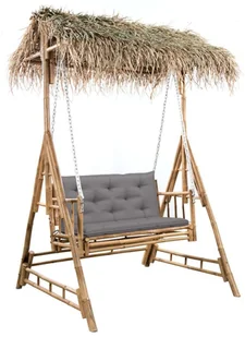 Huśtawkę ogrodową wykonano z odpornego na czynniki pogodowe i wytrzymałego bambusa, a jej daszek pokryto liśćmi palmowymi, dzięki czemu wniesie ona tropikalny styl do Twojej przestrzeni zewnętrznej. Siedzisko zawieszono na metalowych łańcuchach, aby zapewnić maksymalne bezpieczeństwo. Co więcej dołączone poduszki oferują większy komfort podczas odpoczynku. Każda poduszka zawiera dwa zestawy sznurków, aby mocno przymocować ją do ławki.