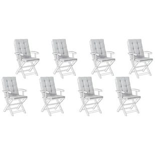 Poduszki zewnętrzne na krzesła. Dodaj odrobinę komfortu i stylu do swojego ogrodu dzięki temu praktycznemu kompletowi poduszek na krzesła ogrodowe. To idealny dodatek, który sprawi, że przebywanie na świeżym powietrzu będzie jeszcze przyjemniejsze. Poduszka ma grube wypełnienie z pianki i zakrywa zarówno siedzisko jak i oparcie, zapewniając wygodę. Materiał jest odporny na blaknięcie pod wpływem słońca.